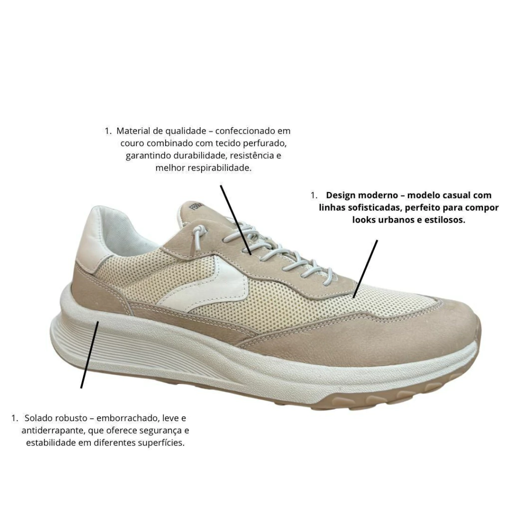 Um tênis que une versatilidade e sofisticação, perfeito para quem deseja estar bem-vestido em qualquer ocasião.