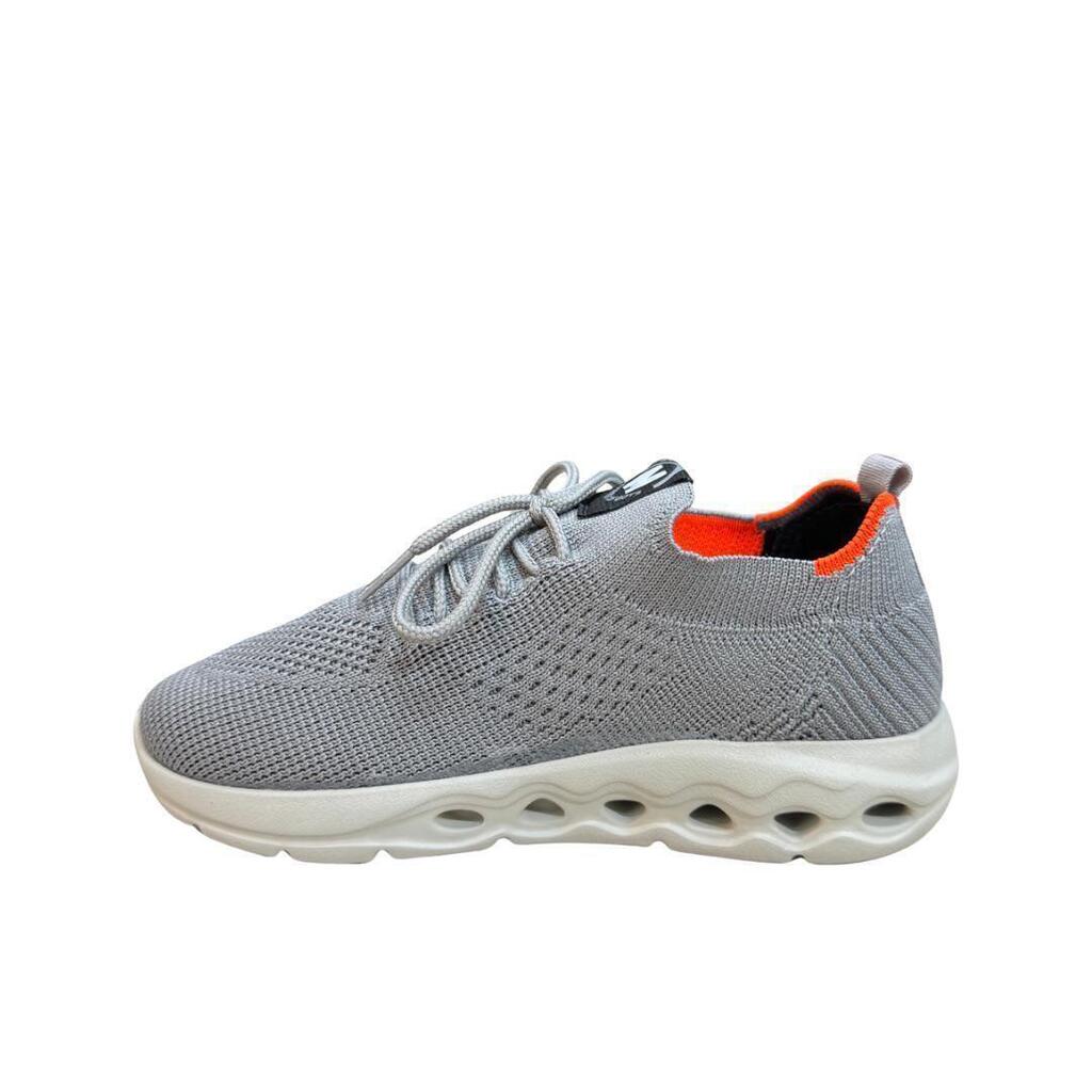 Com design moderno na cor cinza, possui detalhes internos em laranja vibrante e fechamento em cadarço para melhor ajuste e segurança. O solado emborrachado é leve, antiderrapante e conta com recortes que oferecem amortecimento extra, ideal para acompanhar a rotina agitada dos pequenos.